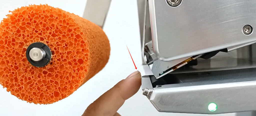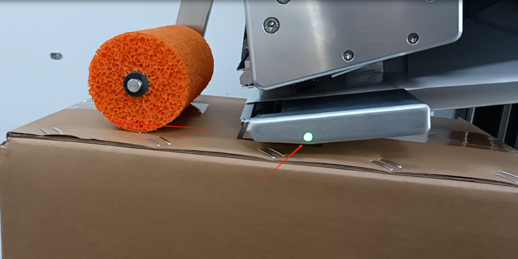 Let’s take a look at the printing parameter adjustment and precautions of the 9550 labeling machine. Firstly, we place the item to be printed underneath our brush, and then our brush will definitely rotate when the product passes by.