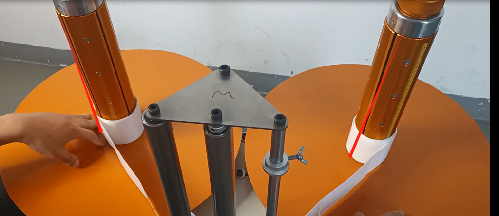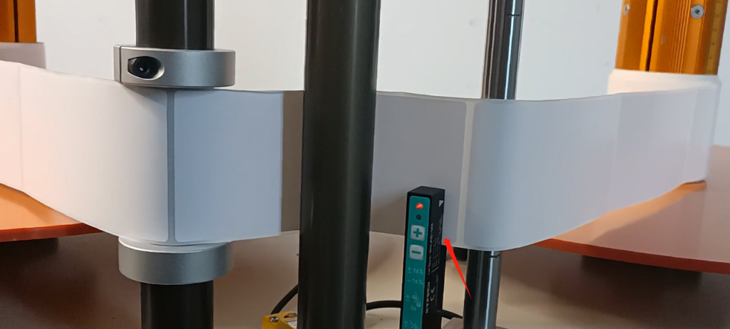 We have another sensor on this side.The sensors are primarily on our axis.If we change the selection mode to meter count.And what we’re saying here is that it’s going to rotate once around this axis, which is 10 centimeters.This sensor can sense our gap, and here it’s 10 centimeters when it turns around, and we’ll talk about that in a minute.That’s how easy it is for us to wrap.