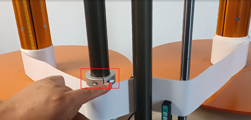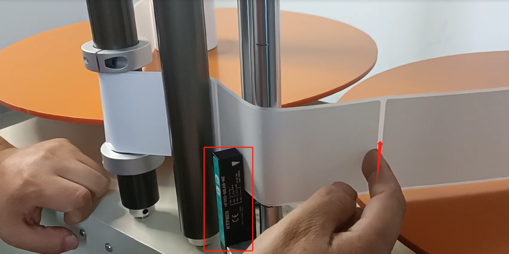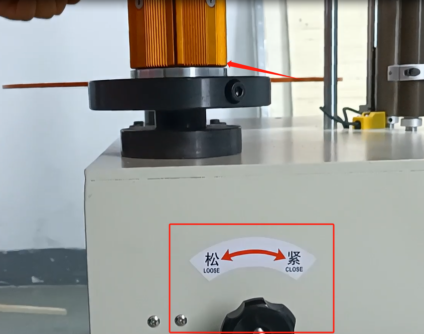 And then we can put the tag on this steering wheel, wrap it around like this, follow your finger.We have a locator block here.If we have a big TAB, we can loosen the screw and move it up.Until it’s the same size and height as our label.