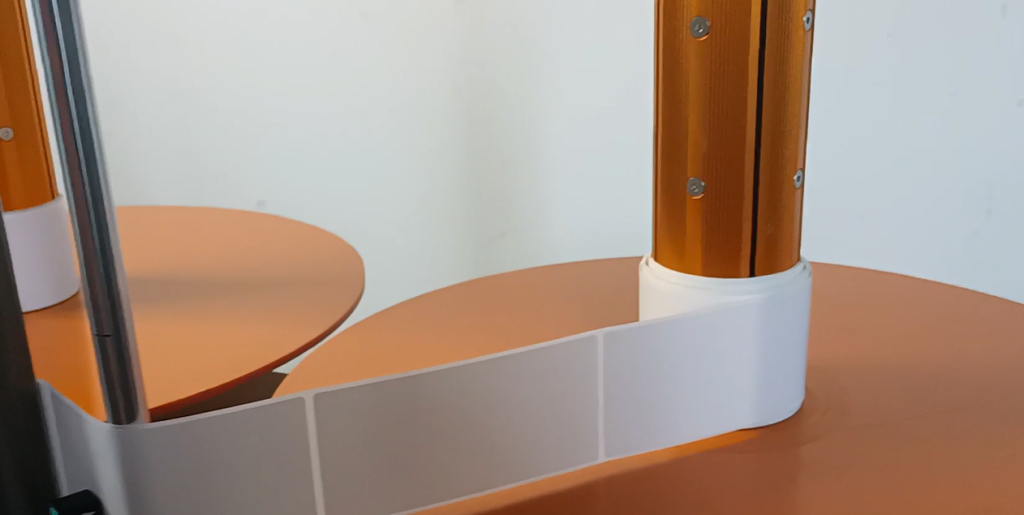 We have a tightness and a looseness up here, so if we go to the right we’re loose, and if we go to the left we’re tight.It’s going to expand our cylinder, and it’s going to compress and expand, and it’s going to fix our label.