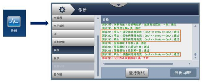 Implement the “self-test” in the “diagnosis” menu, where all the solenoid valves are switched on and off, and the problem of the solenoid valve is judged according to the test results