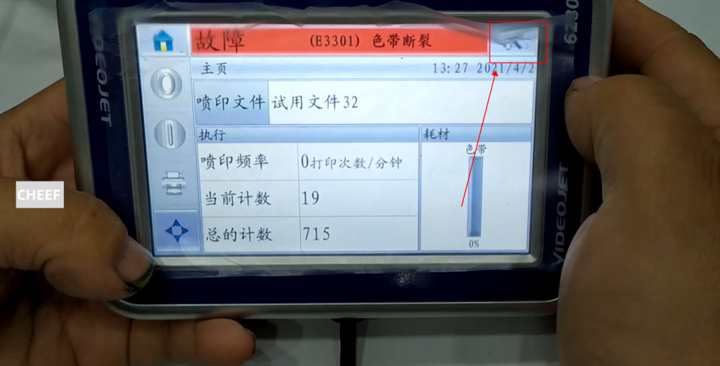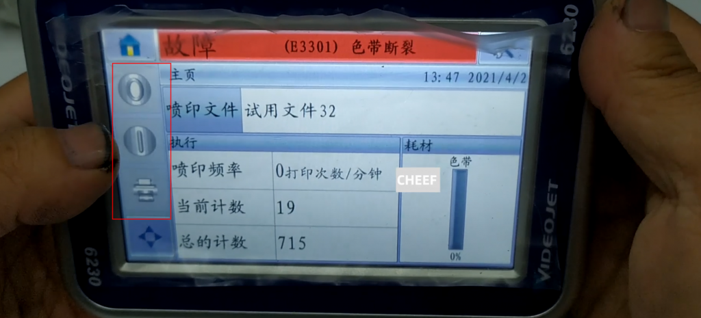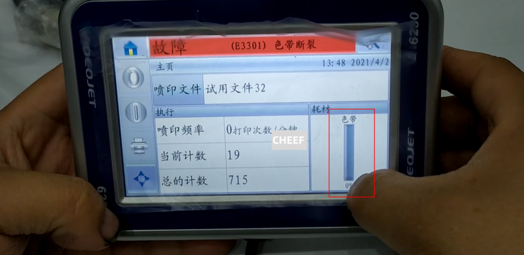 Here is the percentage of the ribbon. If it is just installed, it is 100%. It shows green, and it will display yellow as below 50%. It becomes red below 20%: