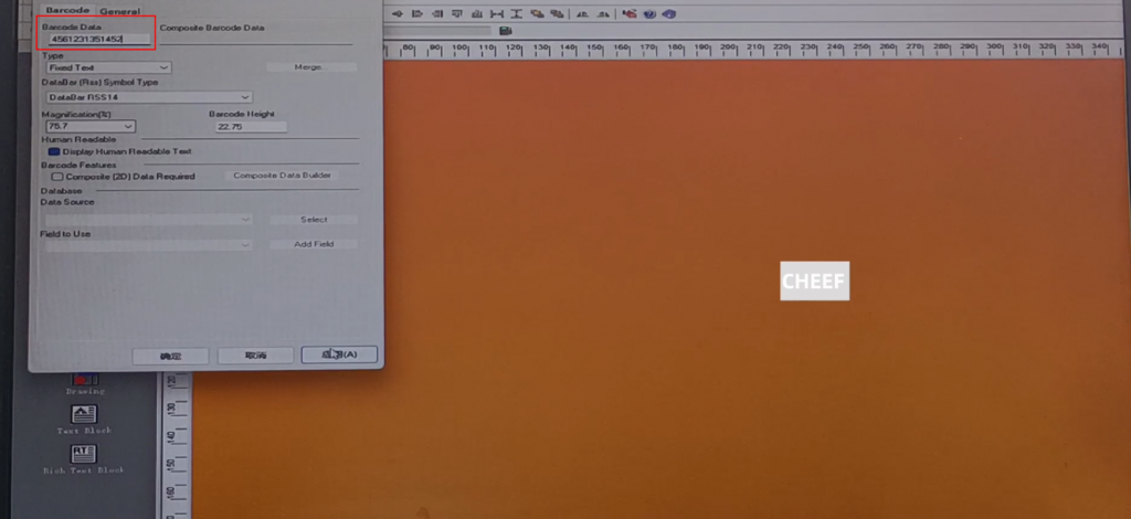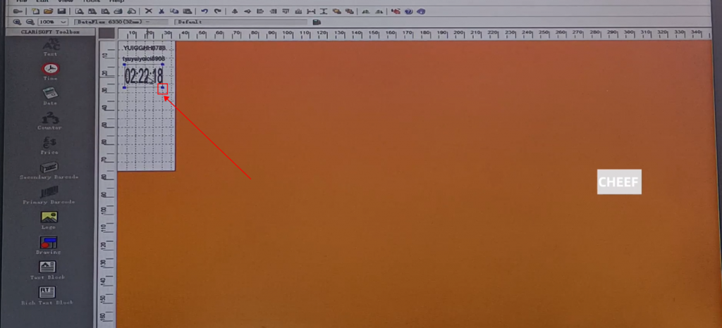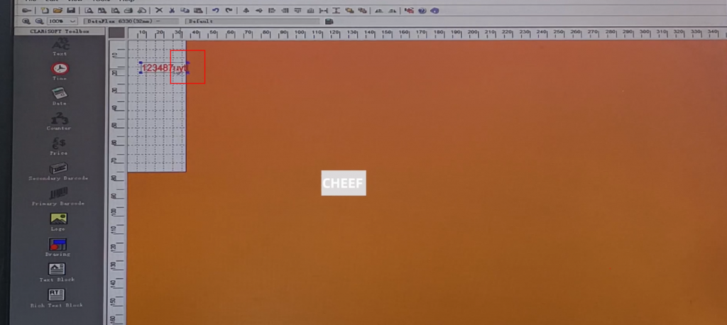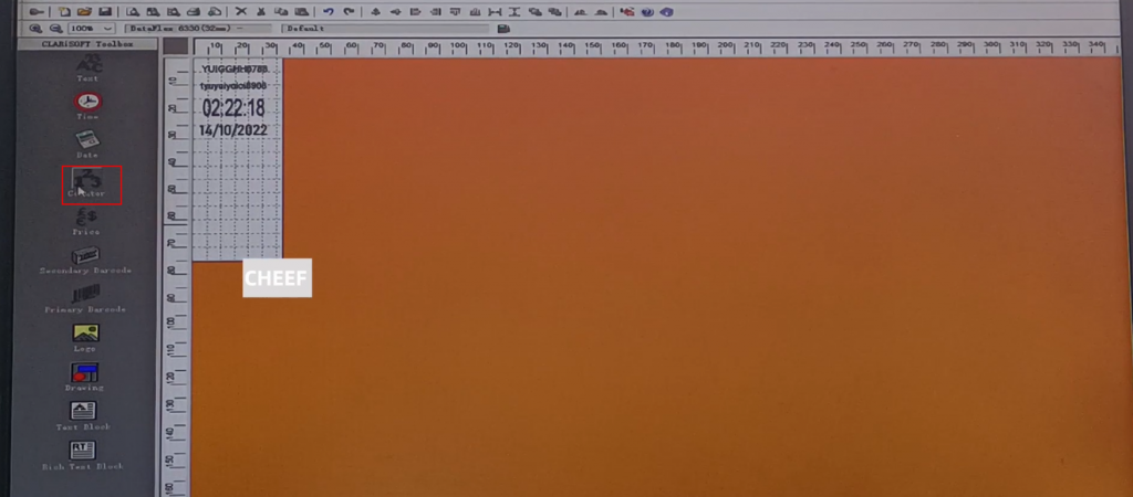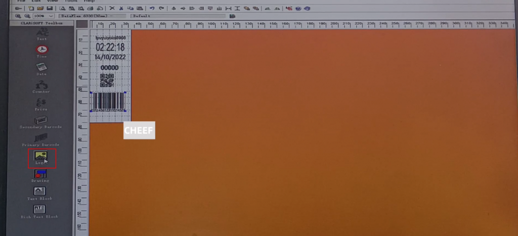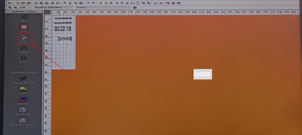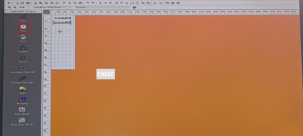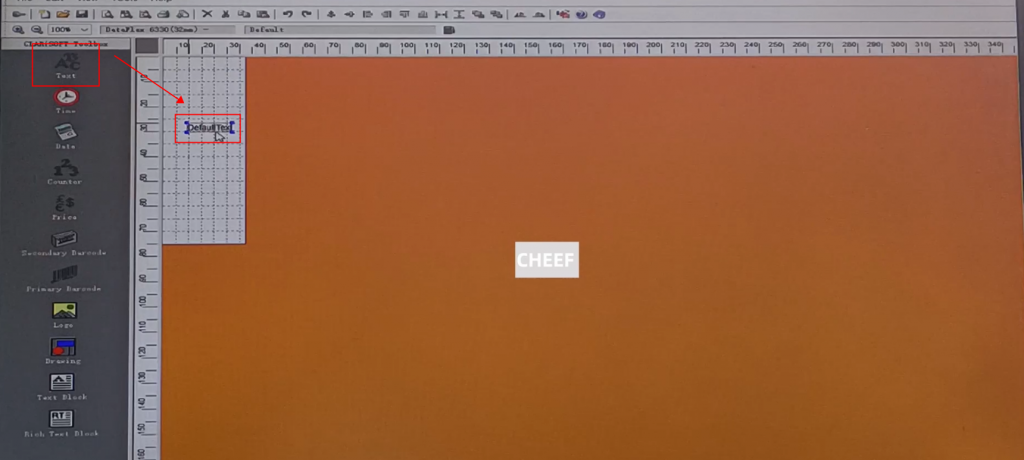 First of all, let’s take a look at the menu here, including text, time, date, flowing number, code, logo, etc., briefly talk about a few commonly used ones. First look at the text, click the text, and click again in the blank space. The default content of this text comes out: