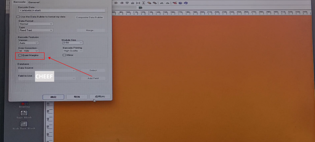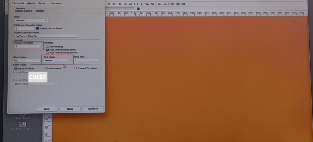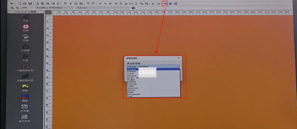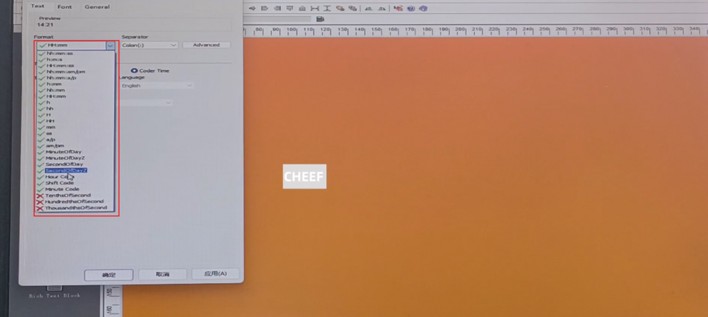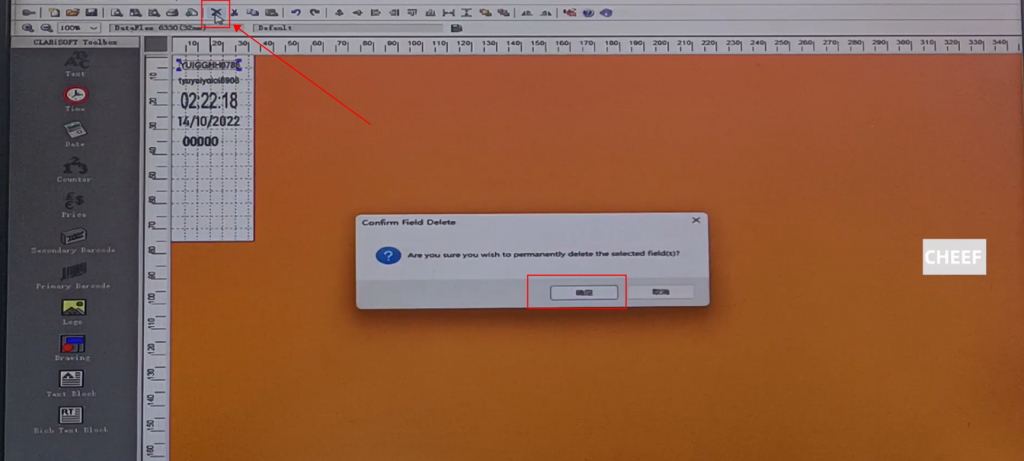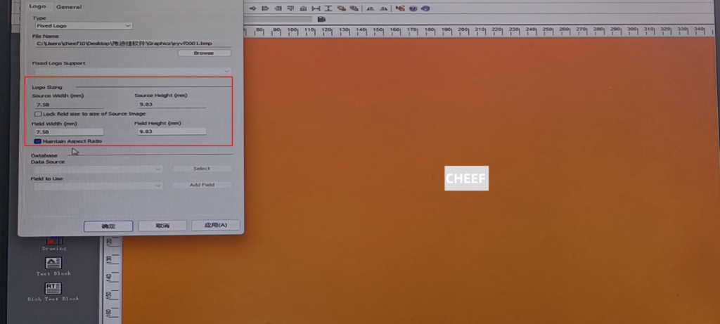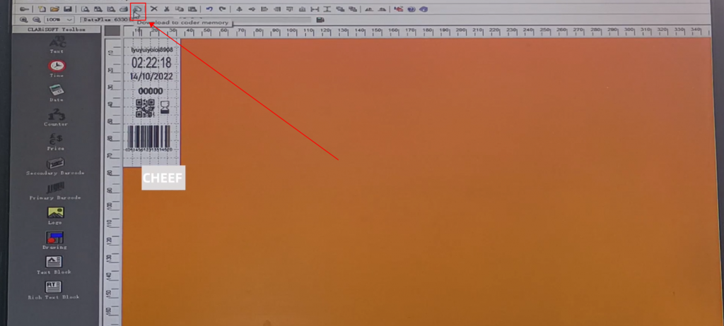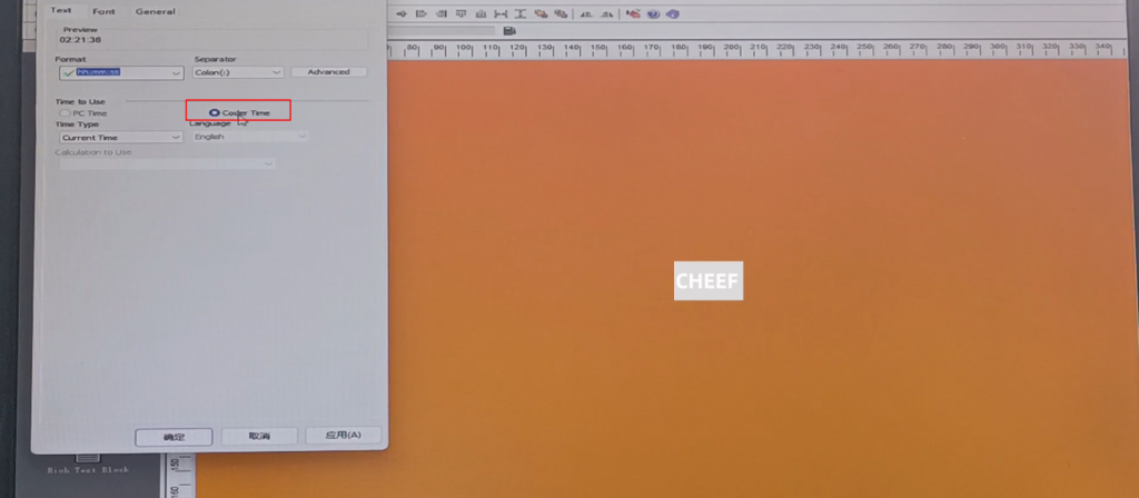 First of all, let’s take a look at the menu here, including text, time, date, flowing number, code, logo, etc., briefly talk about a few commonly used ones. First look at the text, click the text, and click again in the blank space. The default content of this text comes out: