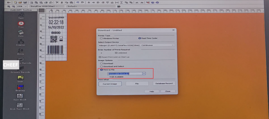 Select to print to the file, select the downloaded U disk name, it will automatically detect the position of the U disk: