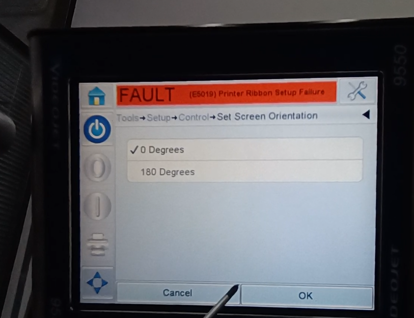 Below is the direction of a screen. With 0-180 degrees, 0 means the page. Let’s take a look at it.And it just goes the other way around. Then check it again at 180. and press OK.