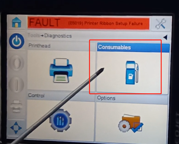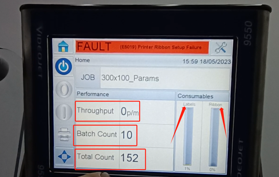 We are going back to it. And then with one print frequency here, just how many times do you print it per minute. Then you can see the print count here. There is a total count over here. Then we can see a consumables here. That’s how much the label is used. Then you can see a usage of the ribbon here. If you use the ribbon, he will show 0%.