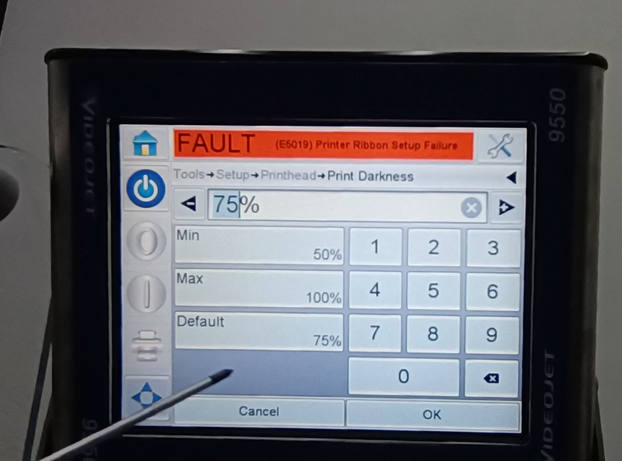 We can change it here. Max 100% minimum 50%. Affects a depth we print.