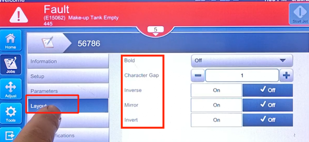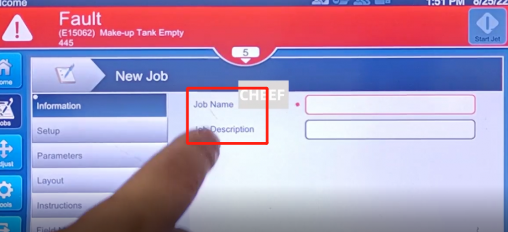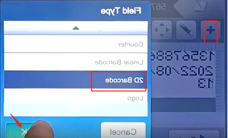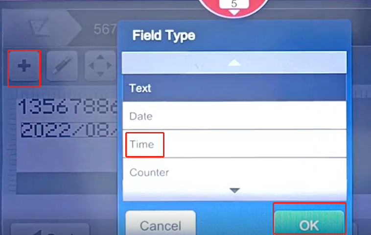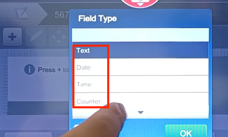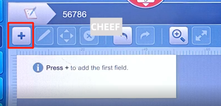 Press the “+ ” key to add the first character field to create our text, date, time, recorder, and so on.