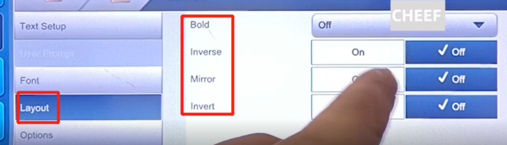 Here is bold, print you can choose not to add bold, choose to add bold 1 times 2 times or close not; here are anti-white, print direction, reverse and mirror, and nozzle to choose a direction of a word, the direction of a word. This is just for the field we just created, click on it.