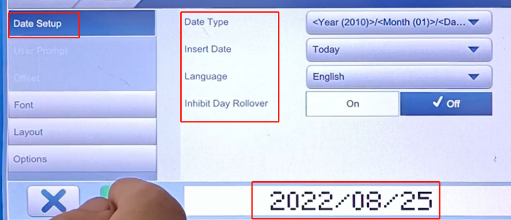 We can change the font size here, which is how big the date font display is inserted. We can drag the character field directly by hand or press the adjustment key to move the adjustment.
