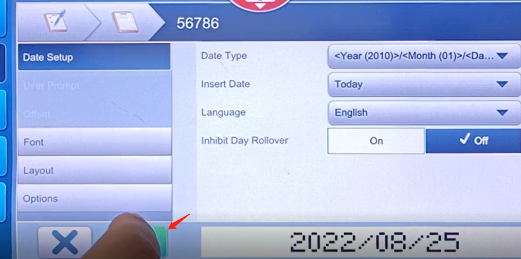 If you want to edit on the date, click on this edit key, and then on the date you can choose today, user customization, etc., “Today” is our date for today. We plug in and press confirmation, and the date is inserted.
