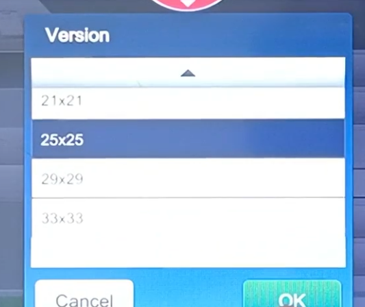Here you can choose the size, 33,29,25, and so on, and then you can see the created good QR code.