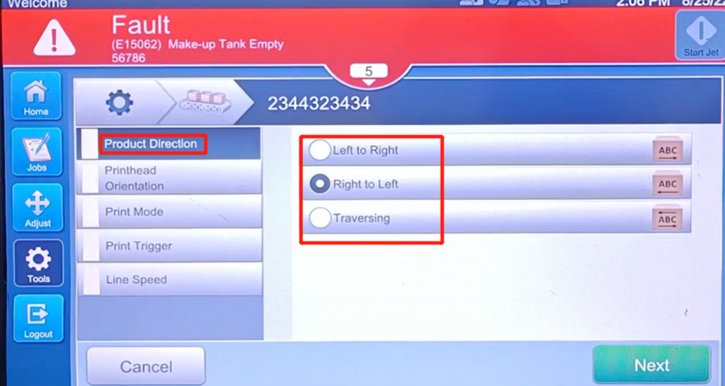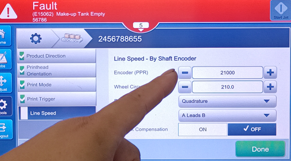 Videojet1580 Line setup (parameter adjustment) tutorial