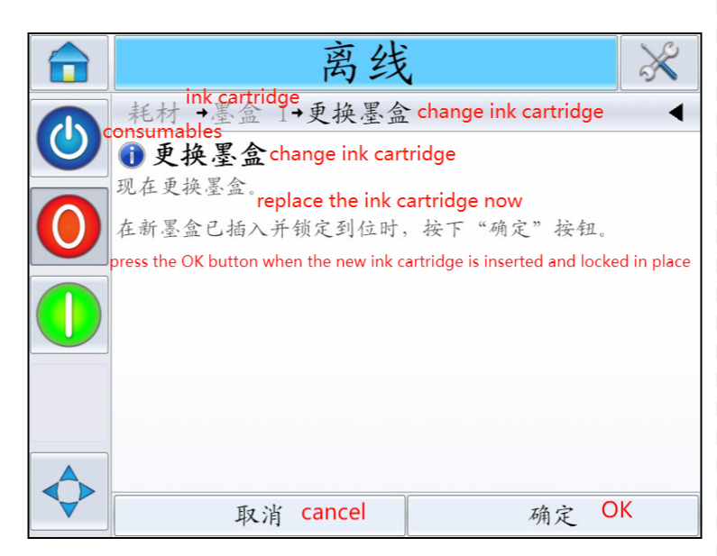 - 7. Touch the “OK ” button to replace the ink cartridge.