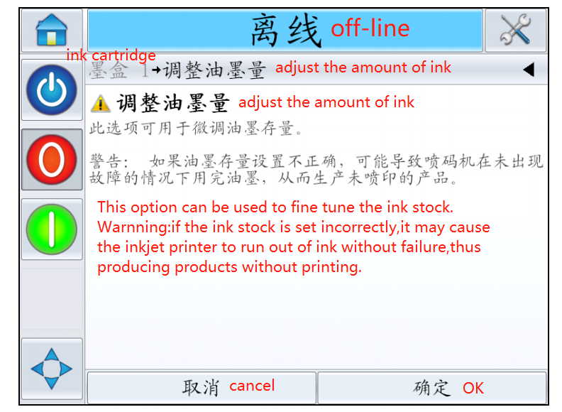 Note: Be careful when adjusting the ink stock to make sure the ink stock is correct and information, because the data is incorrect will cause the printer to exhaust the ink without warning.