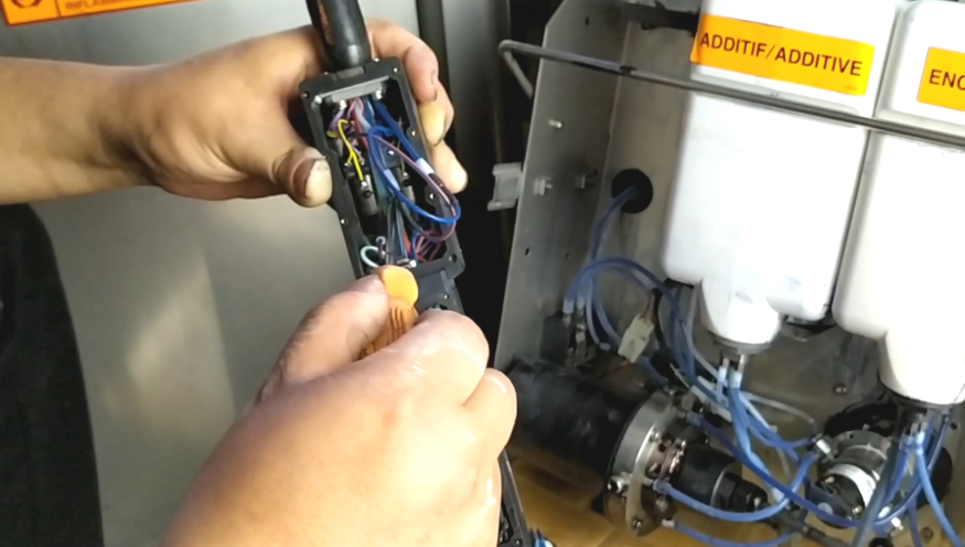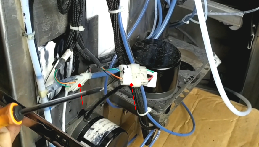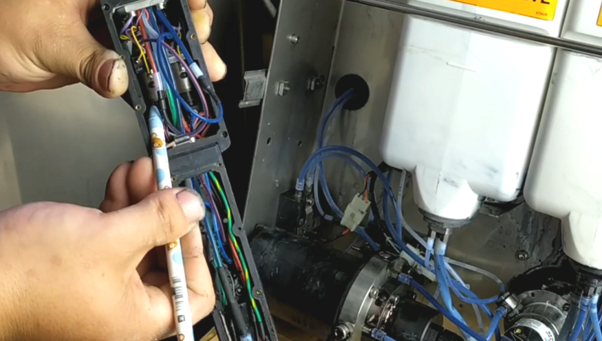 There are two motors behind the machine and the wires must not be faulted because they can plug into each other: